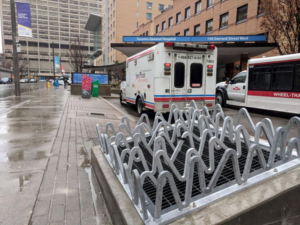 The above is a picture of a vent outside Toronto General hospital on which metal railings were installed. What might look like an abstract piece of art at first glance is actually a strategy to avert the homeless. Ironically, this is outside a place where people usually come to get help. While the backlash against this decision quickly caused the railings to be removed, Toronto is still littered with examples of similar structures.